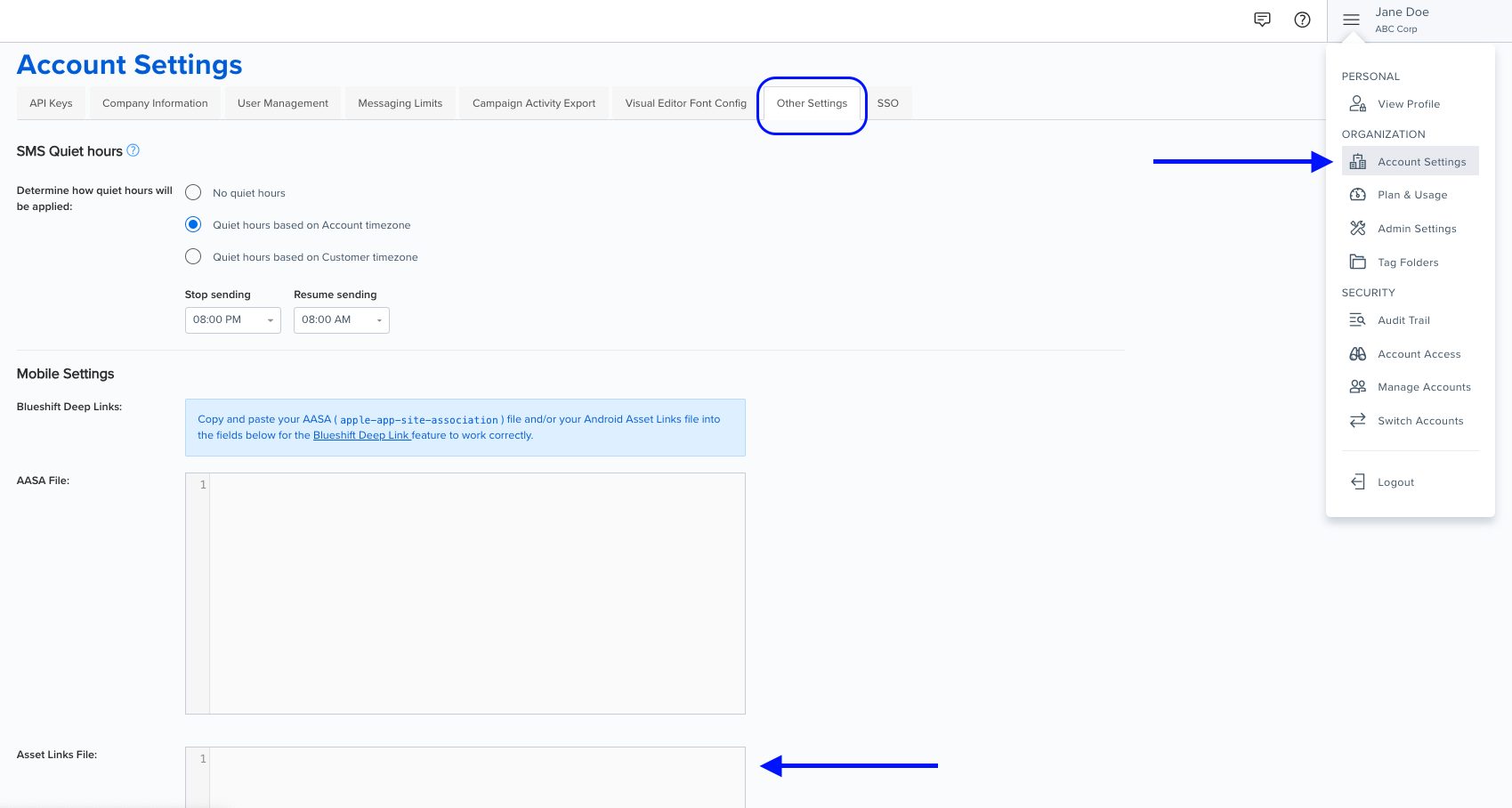 Before testing production universal links, confirm Blueshift is hosting your assetlinks.json file.