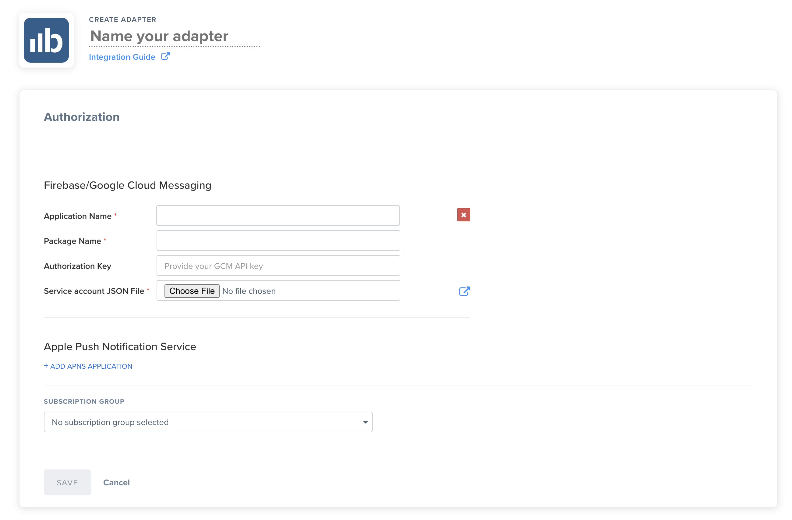 - Single-App accounts: You can create only one adapter per platform (Android/iOS). The same adapter can hold both Firebase (Android) and Apple Push (iOS) credentials.
